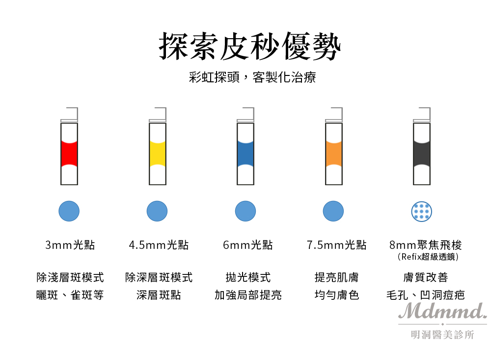 【斑點】 : 色斑、黑斑、老人斑、肝斑、曬斑、雀斑、除刺青皮秒雷射適應症