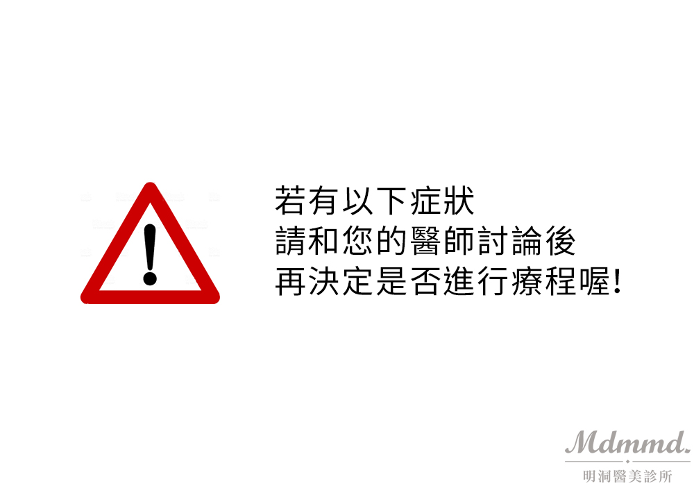 4. 若有以下狀況,請事先告知並徵詢醫師意見後確認是否可進行治療。
