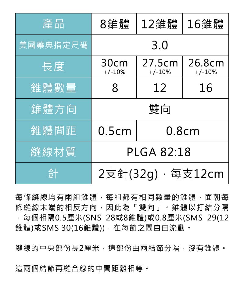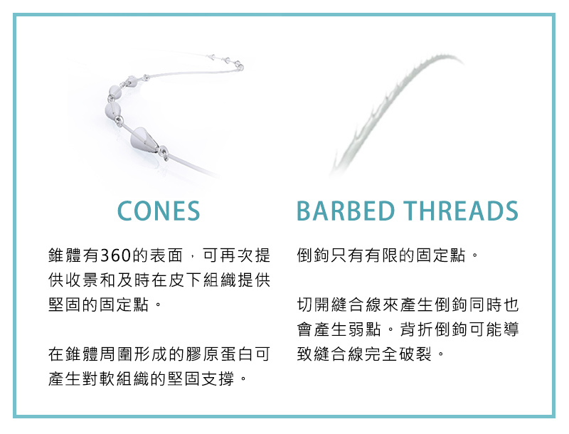 Silhouette InstaLiftTM縫合線及錐體由聚乙醇酸L-乳酸(PLGA)製成,雙向錐體360度光滑表面可為皮下組織提供良好的固定支撐點。縫合線及錐體的成分完全可以被吸收、生物相容及生物可降解,長久以來被用於可再吸收的縫線,因此會隨著時間而被體內代謝吸收。